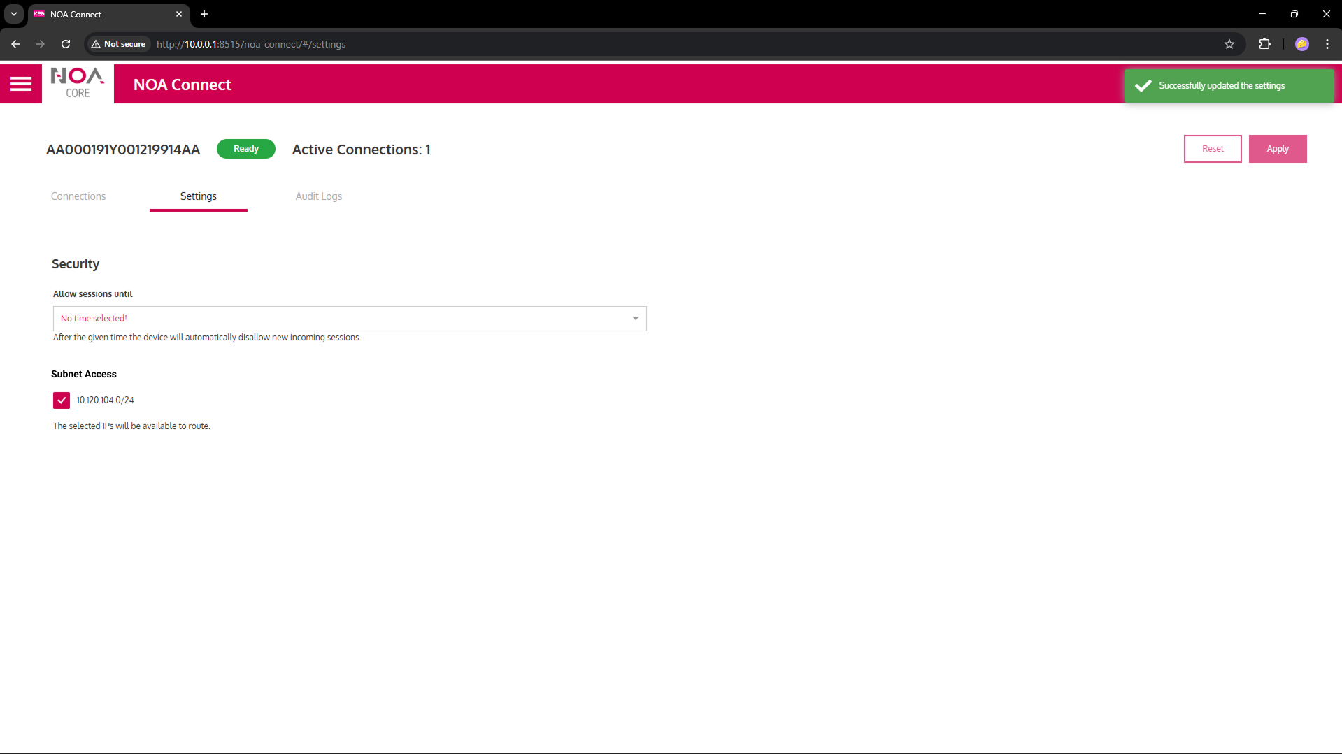 With NOA Connect you can access available subnets from the edge device. The app shows the available IP range. Disable the checkbox if you don't want to make the subnet accessible for remote service.