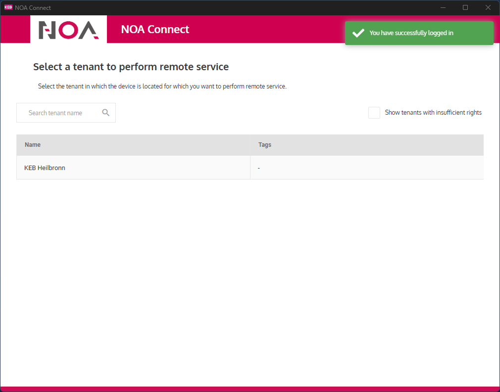 There may be multiple tenants available, depending on what devices you may perform remote service i.e. where you are a "Remote User", see Enable NOA Connect.