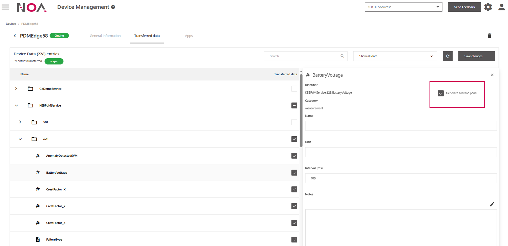 The Transferred Data tab plays a key role for Condition Monitoring. Here it is